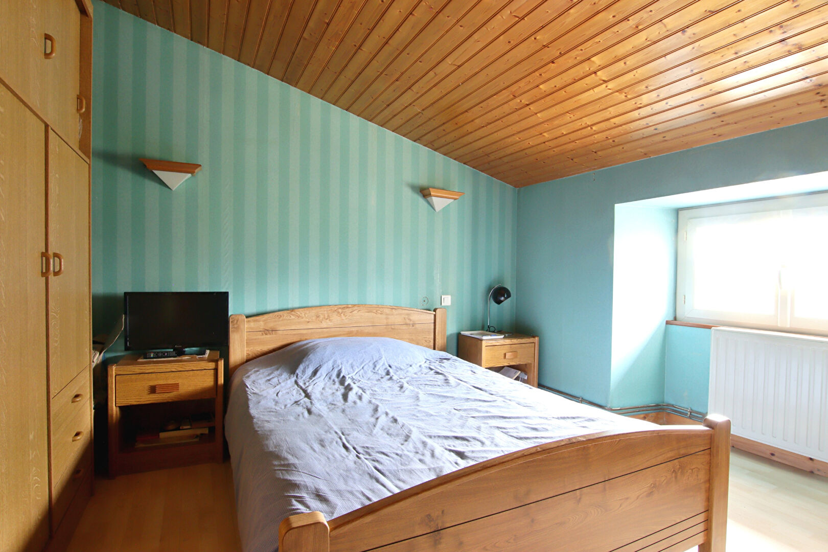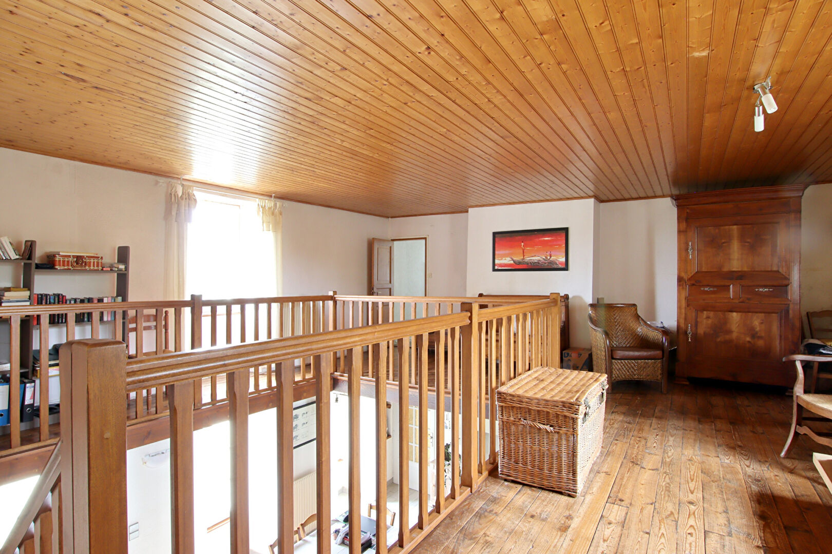Cette jolie maison de 143 m² habitables offre en rez-de-chaussée une belle cuisine aménagée et équipée, une buanderie ayant un accès direct au garage, un salon-séjour avec son poêle à bois, un bureau (ou chambre) donnant accès au grenier et des WC.